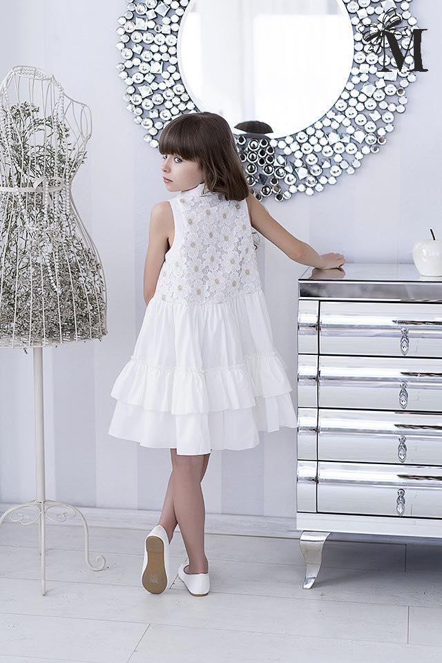 Šventinė balta suknelė mergaitei – lengva, romantiška ir itin elegantiška. Suknelė be rankovių, su klasikine apykakle ir subtiliai dekoruotu viršumi, kuris suteikia išskirtinumo. Sijonas sluoksniuotas, lengvai krintantis, sukuriantis purų ir žaismingą siluetą. Švelnus pamušalas užtikrina patogumą, o natūraliai atrodanti medžiaga leidžia jaustis laisvai visos šventės metu. Puikus pasirinkimas šventėms, krikštynoms, gimtadieniams ar fotosesijoms. #suknelė#mergaitei#baltasuknelė#krikštynusuknele#stilinga
