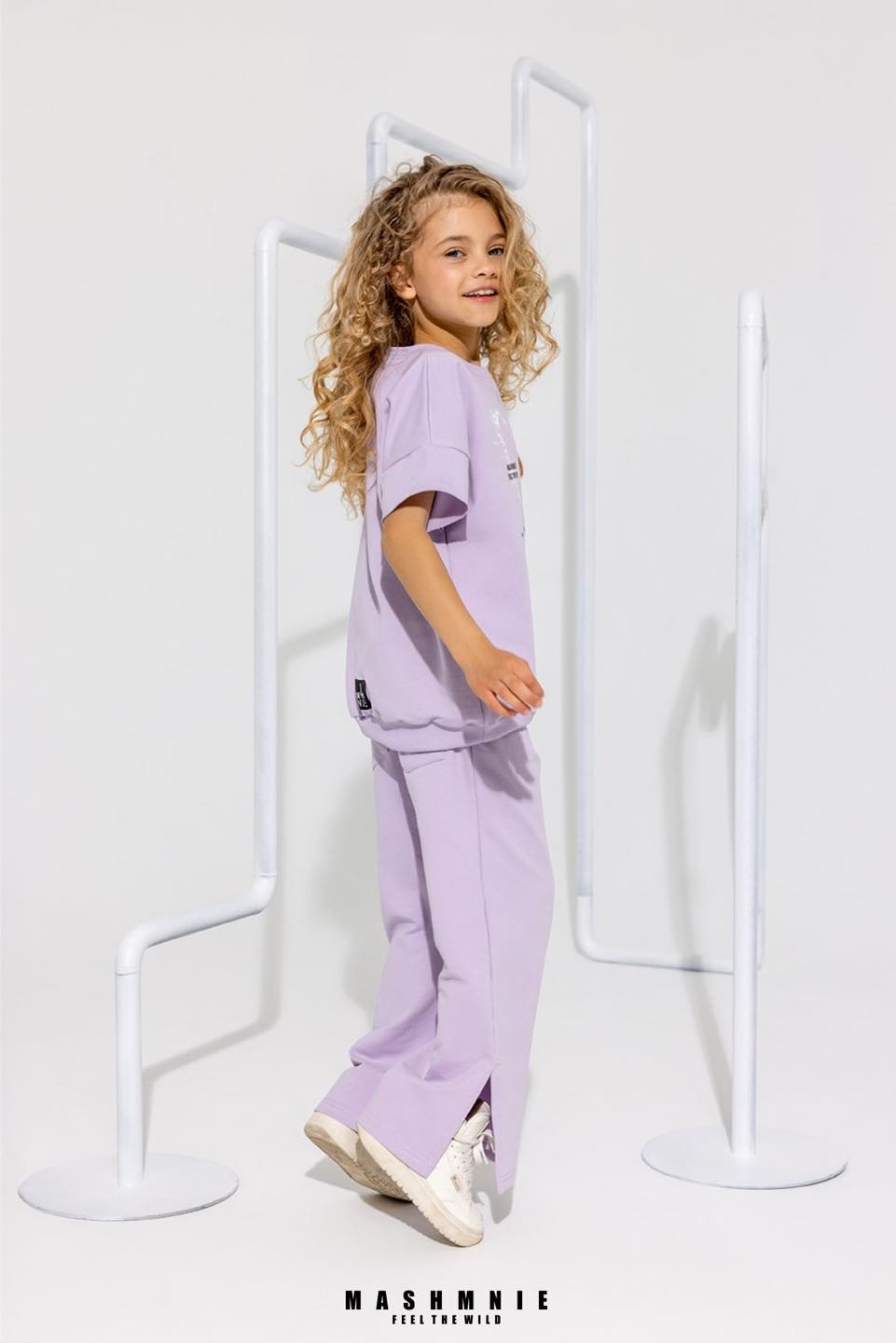 Stilingas ir patogus mergaitiškas laisvalaikio komplektas – puikus pasirinkimas kasdieniam dėvėjimui. Švelnios alyvinės spalvos marškinėliai trumpomis rankovėmis dekoruoti išskirtiniu gyvūno silueto spaudu, kuris suteikia modernumo ir žaismingumo. Komplektą papildo laisvo kirpimo kelnės, kurios užtikrina maksimalų komfortą ir judėjimo laisvę. Minkštas, malonus kūnui audinys leidžia vaikui jaustis patogiai visą dieną – tiek mokykloje, tiek laisvalaikiu ar kelionėse. Minimalistinis dizainas ir šiuolaikiškas siluetas sukuria stilingą, lengvai derinamą įvaizdį.#stilingas#derinukas#kostiumelis#mergaitei