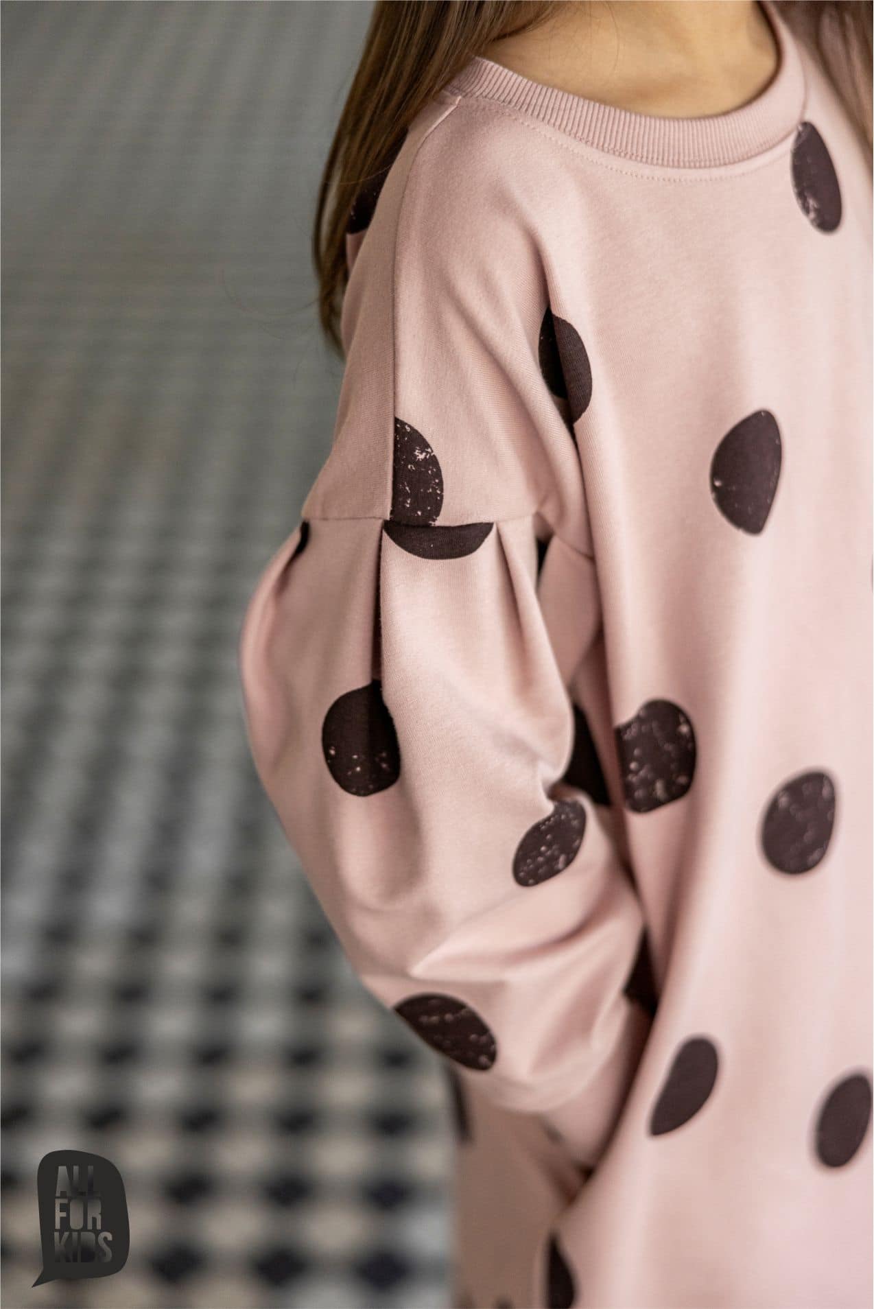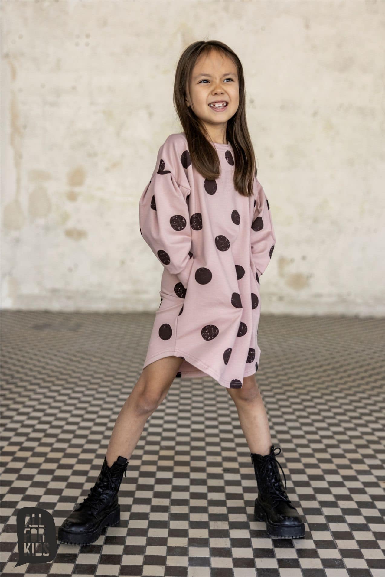 Stilinga ir patogi rožinės spalvos suknelė su stambiais juodais taškeliais – puikus pasirinkimas aktyviai ir šiuolaikiškai mergaitei. Laisvo kirpimo modelis nevaržo judesių, todėl tiks tiek žaidimams, tiek šventėms ar kasdieniam dėvėjimui. Ilgos rankovės suteikia jaukumo vėsesnėmis dienomis, o minkštas, malonus audinys užtikrina komfortą visą dieną. Suknelė lengvai derinama tiek su sportinio tipo batais, tiek su aulinukais ar tamprėmis. #suknelė#mergaitei#šiltasuknelė#margasuknelė